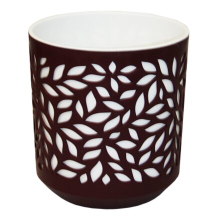 Кашпо пластик, 2.5 л, 17х14.5 см, бордо/белый, ВМС, Leaves, КШ-9575