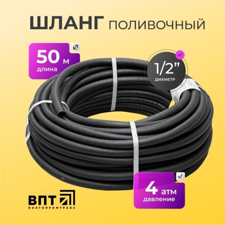 Шланг поливочный, 1/2 '', внутренний d16 мм, 4 атм, армированный, 50 м, ВРТ, Волжский, резина, черный, ВФ5170010