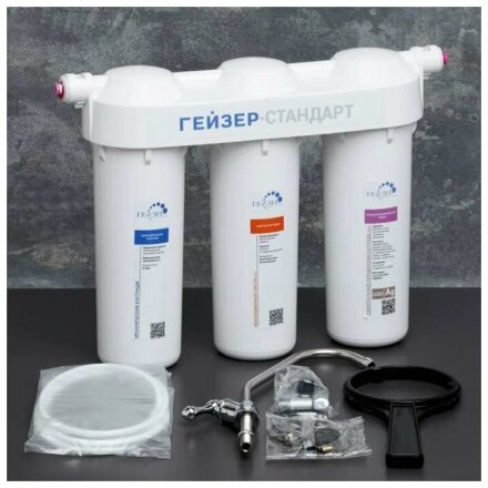 Фильтр для воды Гейзер, Стандарт, для холодной воды, система под мойку, для жесткой воды, 3 ступ
