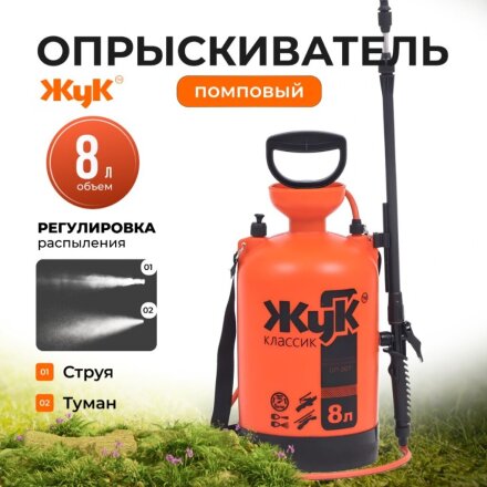 Опрыскиватель садовый Жук, 8 л, пластик, 650-970 мм, телескопический брандспойт, Классик, ОП-207 0444-00