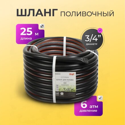 Шланг поливочный, 3/4 '', 19 мм, 6 атм, армированный, 25 м, 3 слоя, Жук, Оптима, ТЭП, 7138-00