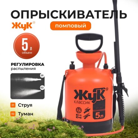 Опрыскиватель садовый Жук, 5 л, пластик, 650-970 мм, телескопический брандспойт, Классик, ОП-207 0437-00