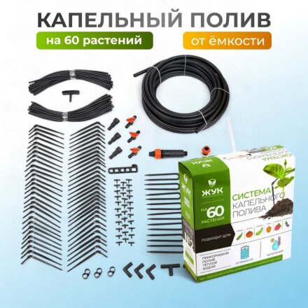 Набор для капельного полива от емкости, на 60 растений, 9 м, Жук, 4718-00