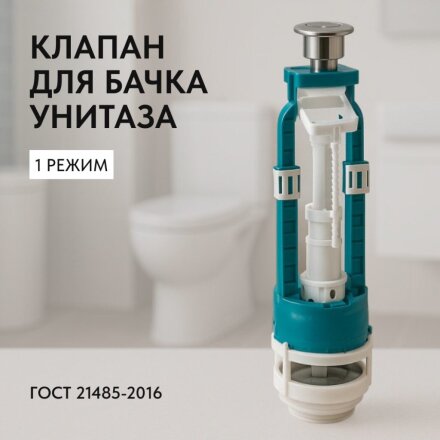 Клапан для бачка унитаза пластик, двухрежимный, кнопочный, хром, Инкоэр, СБ2м-АА
