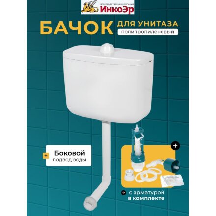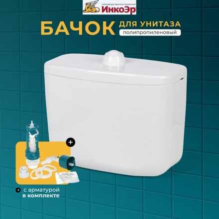 Бачок для унитаза полипропилен, кнопочный, с арматурой, низкорасположенный, Инкоэр, Тип БУ А СТАР
