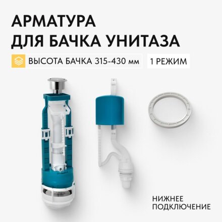 Арматура для бачка унитаза нижняя, 1/2", кнопочная, хром, Инкоэр, СБ1-НпрНРФ-А-В Р