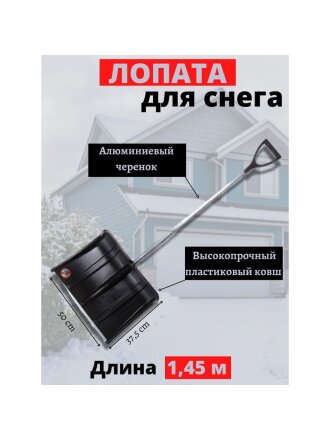 Лопата для снега пластик, с алюминиевой планкой, 375х500х1450 мм, черенок алюминиевый, тулейка 32 мм, Инструм-Агро, Аляска, 100165