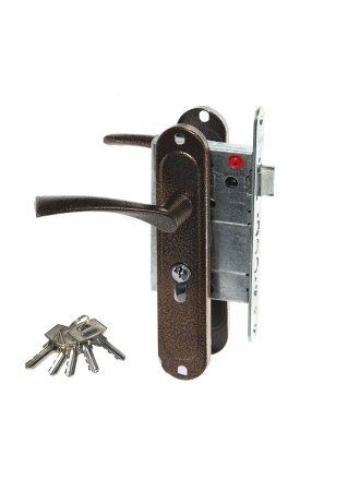 Замок врезной КЭМЗ, ЗВ4-1У (ЗВ4-3-1У/2-1У), ручка в комплекте, цилиндровый, медный