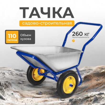 Тачка строительная двухколесная, сталь, 260 кг, 110 л, 0.7 мм, втулка d25 мм, PR 3.25х8, в коробке, Корона, 43.110.260 LUX