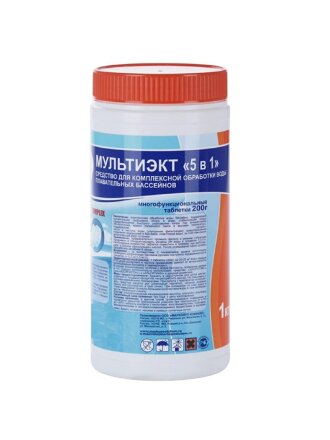 Средство Маркопул Кемиклс, МультиЭкт 5 в 1, М65, таблетки, для комплексной обработки воды, банка, 1 кг, одна таблетка 200 г