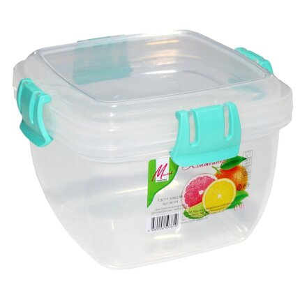 Контейнер пищевой пластик, 0.9 л, 14х14х10 см, в ассортименте, квадратный, герметичный, Милих, 06334