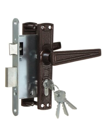 Замок врезной Омега, ЗВ7, 00-00000589, ручка в комплекте, цилиндровый, бронзовый