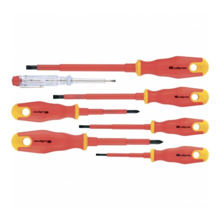 Отвертка диэлектрическая, 7 предметов, Сибртех, двухкомпонентный, CrV сталь, до 1000 В, тестер, 12936