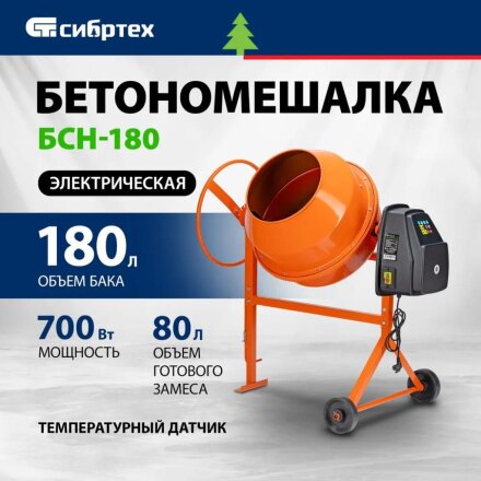 Бетоносмеситель Сибртех, БСН-180, 180 л, 700 Вт, 230 В, чугунный венец, 95513