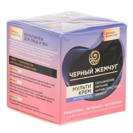 Мультикрем для лица и век, Черный жемчуг, Увлажнение и питание, антивозрастной, для всех типов кожи, 46 мл