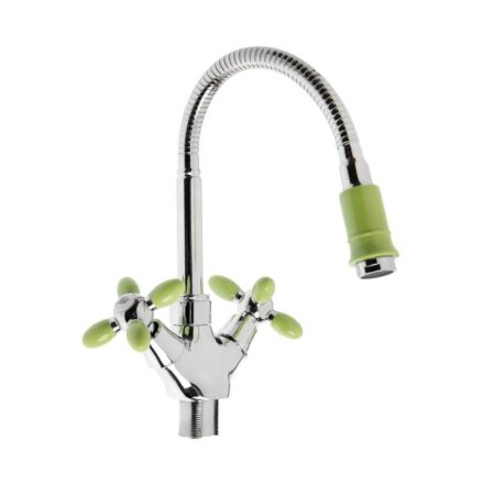 Смеситель для кухни, Эверест, гибкий излив, с кран-буксой, зеленый, B58-071E