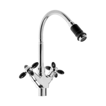 Смеситель для кухни, Эверест, гибкий излив, с кран-буксой, черный, B57-071F