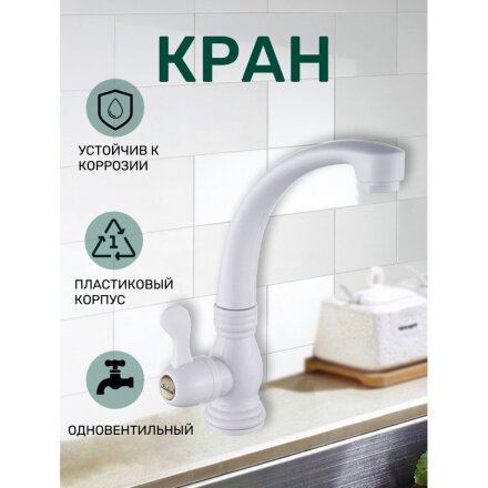 Смеситель для кухни, Эверест, с кран-буксой, для одного типа воды, пластиковый корпус, белый, B45-337