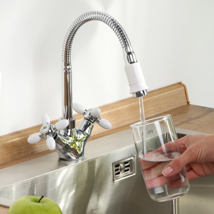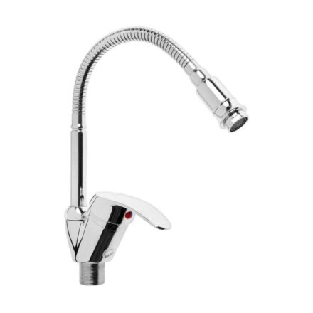 Смеситель для кухни, Эверест, гибкий излив, с кран-буксой, хром, B58-340M