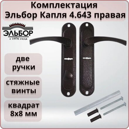 Ручка дверная Эльбор, Капля 4.643, 5297, правая, для замка сувальдного, комплект ручек, антик медь, ЦАМ