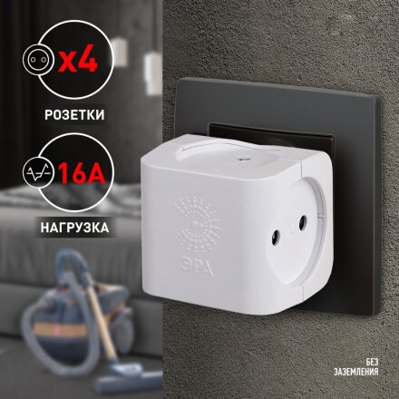 Разветвитель 2 гнезда, с заземлением, 16 А, белый, Эра, Spx-2e-W, Б0053478