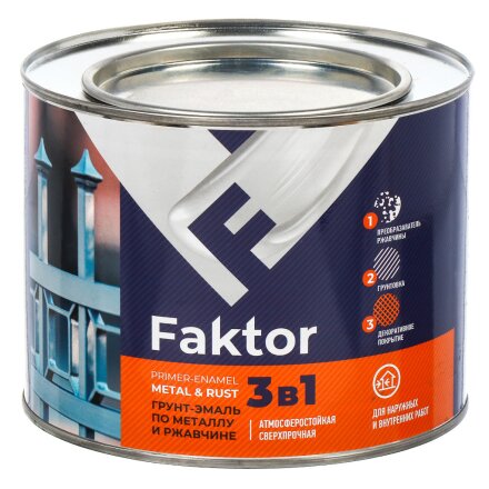 Грунт-эмаль Ярославские Краски, Faktor, по ржавчине, алкидная, серая, 0.8 кг
