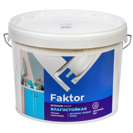 Краска водно-дисперсионная, Ярославские Краски, Faktor, акриловая, интерьерная, влагостойкая, матовая, белая, 13 кг, ВД