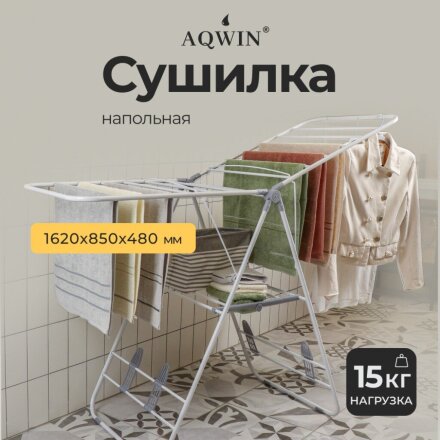 Сушилка для белья напольная, полотно 16 м, 2 уровня, 146х60х95 см, складная, с пластиковыми вставками, белая, Aqwin, Бабочка, VPF04W