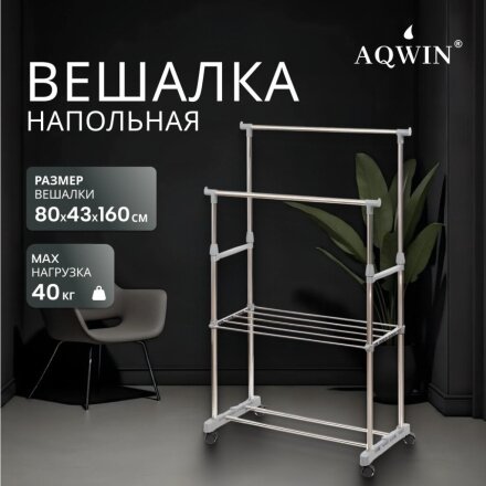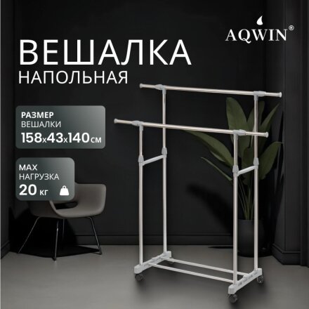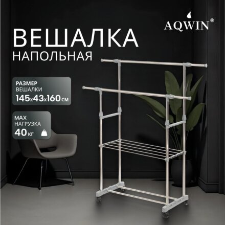 Вешалка напольная 145х43х160 см, Aqwin, металл, с колесами, телескопическая, 40 кг, VSY22, серая