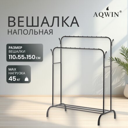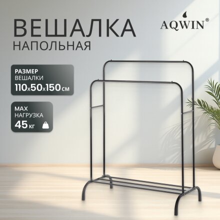 Вешалка напольная 110х50х150 см, Aqwin, металл, полка для обуви, 45 кг, Элит, черная, двойная