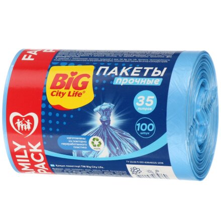 Пакеты для мусора 35 л, 100 шт, 6 мкм, Big City Life, 14410035, синие