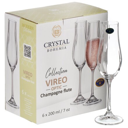 Бокал для шампанского, 200 мл, стекло, 6 шт, Bohemia, Vireo optic, 91L/1SJ95/0/00000/200-664