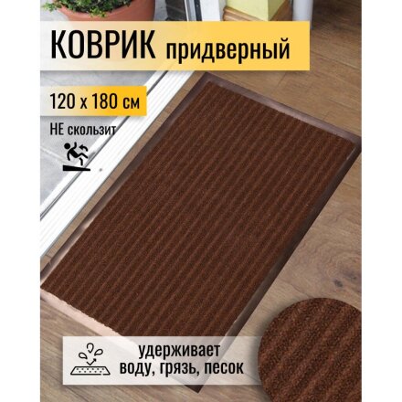 Коврик грязезащитный, 120х180 см, прямоугольный, резина, с ковролином, коричневый, Floor mat, ComeForte, XTL-7002