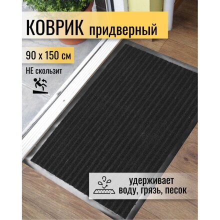 Коврик грязезащитный, 90х150 см, прямоугольный, резина, с ковролином, черный, Floor mat Комфорт, ComeForte, XT-6001