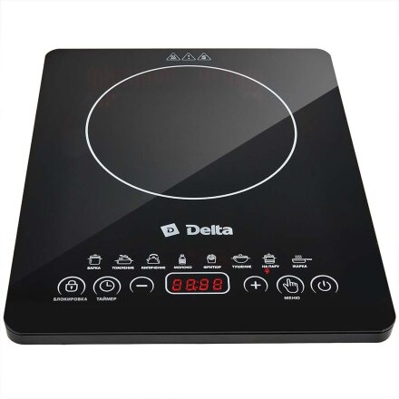 Плита индукционная Delfa, D-302N, 2000 Вт, 1 конфорка, стеклокерамика, сенсорная, переключатель сенсорный, 8 программ, черная
