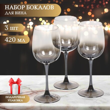 Бокал для вина, 420 мл, стекло, 3 шт, Glasstar, Шоколад Омбре, RNСHO_8166_11