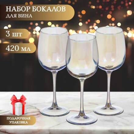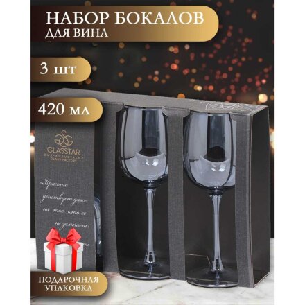 Бокал для вина, 420 мл, стекло, 3 шт, Glasstar, Радуга 3 Серебро, RNS/RN_8166_11