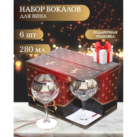 Бокал для вина, 280 мл, стекло, 6 шт, Glasstar, Барокко, GN1_411_3