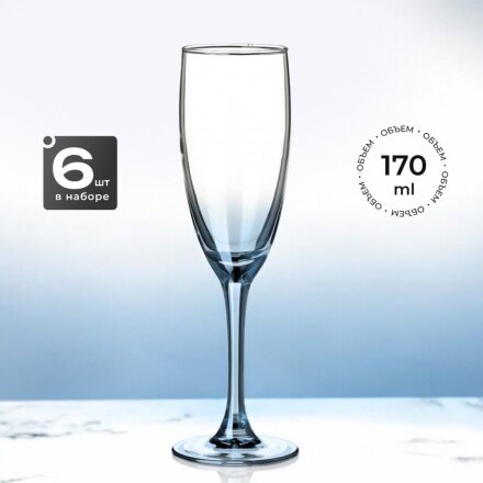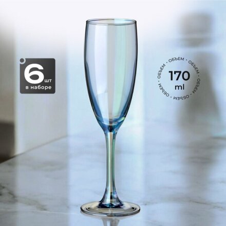 Бокал для шампанского, 170 мл, стекло, 6 шт, Glasstar, Васильковый 3, RNVS_1687_3