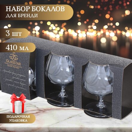 Бокал для бренди, 410 мл, стекло, 3 шт, Glasstar, Черное море, RNBS_1812_11