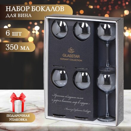 Бокал для вина, 350 мл, стекло, 6 шт, Glasstar, Радуга 3 Серебро, RN_1819_9