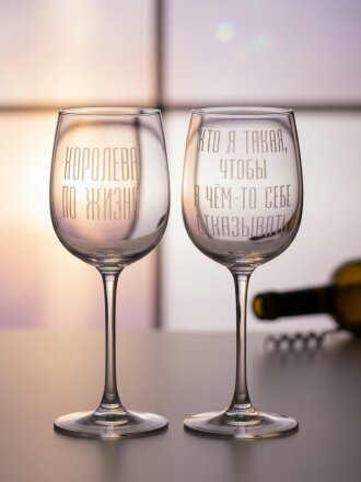 Бокал для вина, 420 мл, стекло, 2 шт, Glasstar, Надписи Микс, G8166