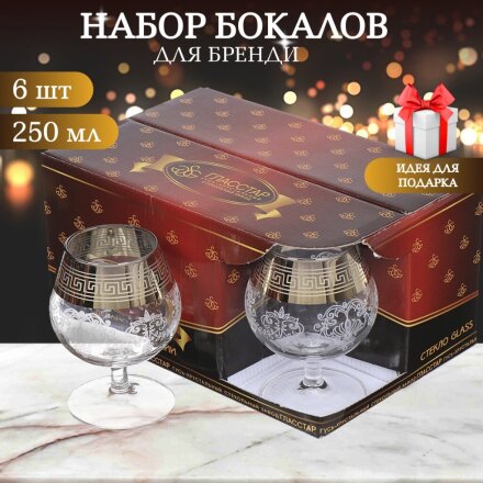 Бокал для бренди, 250 мл, стекло, 6 шт, Glasstar, Барокко, GN1_1740_3