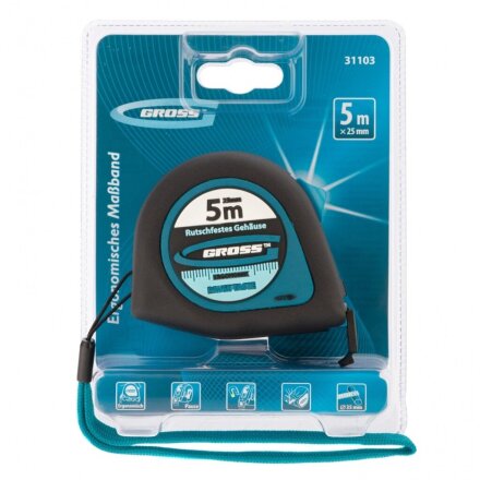Рулетка 5 м, магнитный, 25 мм, с фиксатором, Gross, Ergonomisch, 31103