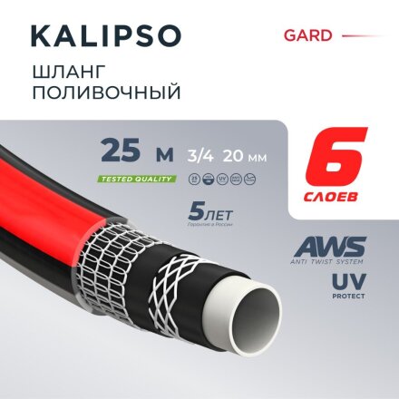 Шланг поливочный, 3/4 '', внутренний d20 мм, 21 атм, армированный, 25 м, 6 слоев, Kalipso, Gard, ПВХ, всесезонный, антиторсионный, AGL273425