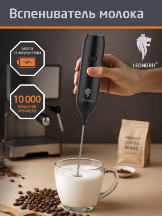Вспениватель молока аккум, 10 Вт, 10000 об/мин, черная, Leonord, 110864