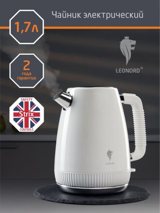 Чайник электрический Leonord, LE-1546, белый, 1.7 л, 2200 Вт, скрытый нагревательный элемент, нержавеющая сталь