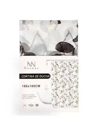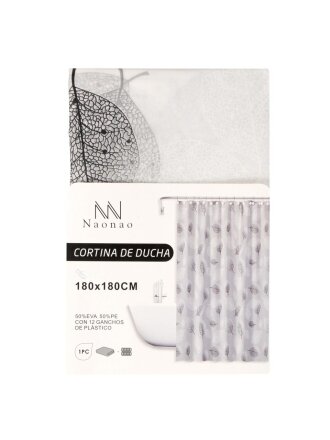 Штора для ванн 180х180 см, Peva, Naonao, Листья на сером, A310136