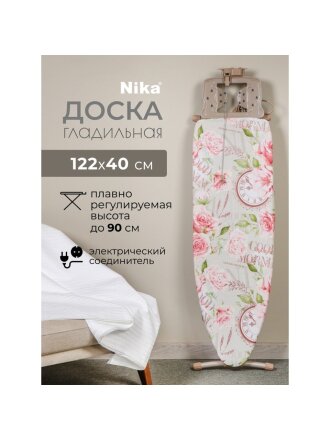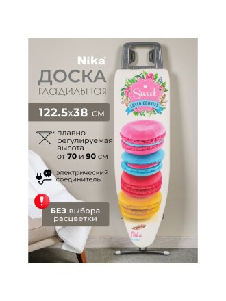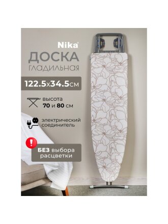 Доска гладильная 122х34.5 см, подставка для утюга, гладильный рукав, встроенная розетка, удлинитель 1.6 м, Nika, Н3, в ассортименте