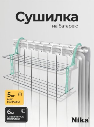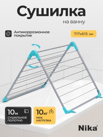Сушилка для белья на ванну, полотно 10 м, складная, 14 прутьев, 10 кг, серебряная, Nika, СБ4